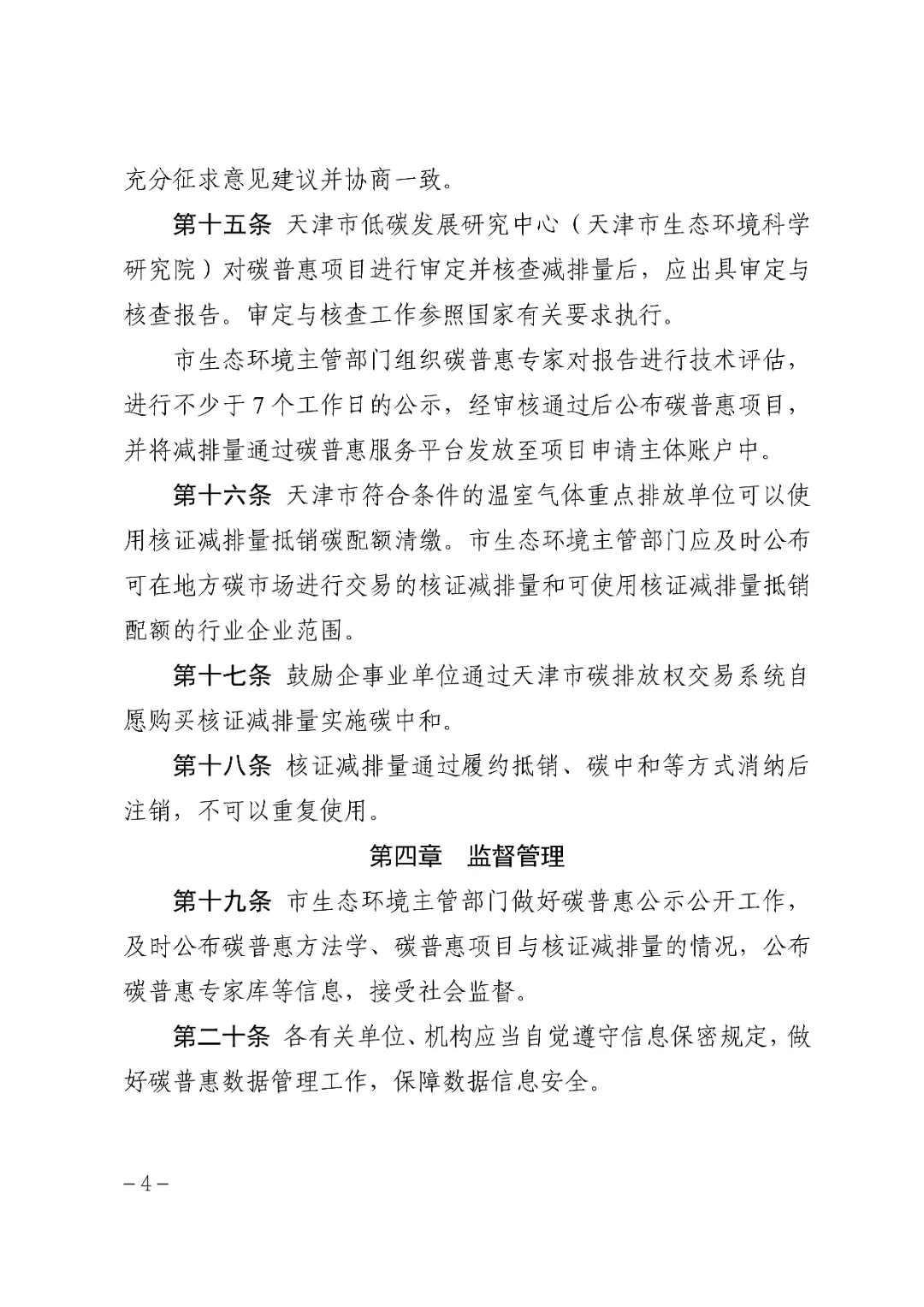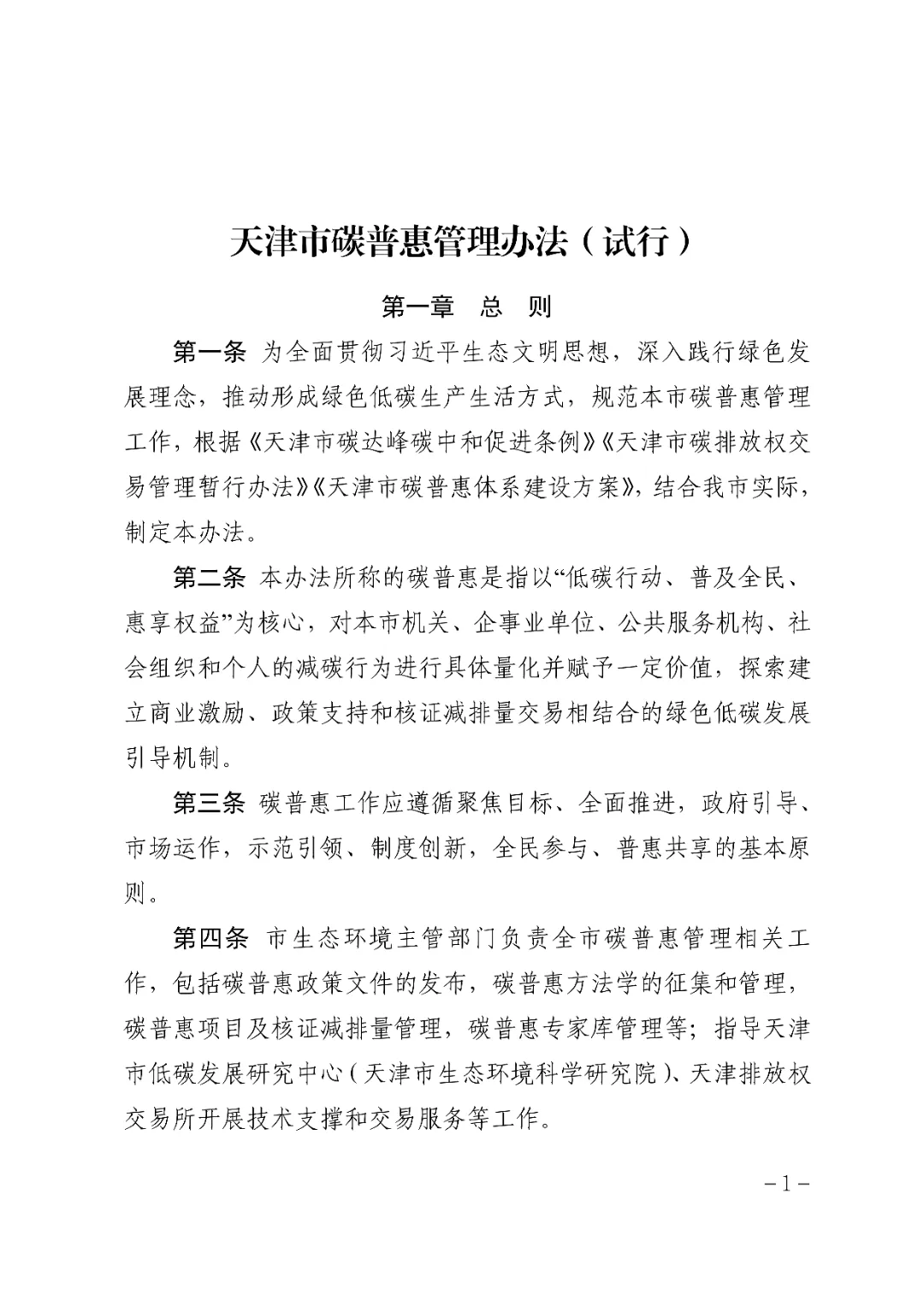 為推動形成綠色低碳生產(chǎn)生活方式,規(guī)范碳普惠管理工作,根據(jù)《天津市碳達(dá)峰碳中和促進(jìn)條例》《天津市碳普惠體系建設(shè)方案》等相關(guān)要求,天津市生態(tài)環(huán)境局制定了《天津市碳普惠管理辦法(試行)》(津環(huán)規(guī)范〔2024〕1號),并于9月12日印發(fā)。詳情如下: