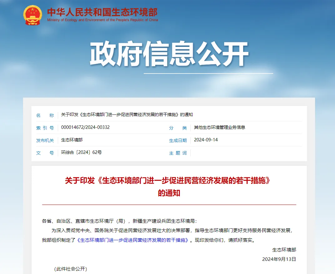 關(guān)于印發(fā)《生態(tài)環(huán)境部門進(jìn)一步促進(jìn)民營(yíng)經(jīng)濟(jì)發(fā)展的若干措施》的通知