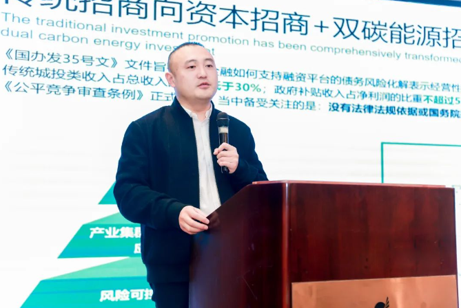 中能國新環(huán)保科技副總經(jīng)理、零碳事業(yè)部總經(jīng)理中能國新環(huán)??萍几笨偨?jīng)理、零碳事業(yè)部總經(jīng)理劉帥作題為《零碳示范園區(qū)投規(guī)建運一體化·共筑綠色未來》的主旨報告,報告簡述了零碳產(chǎn)業(yè)的政策背景及產(chǎn)業(yè)現(xiàn)狀,并通過招商模式轉(zhuǎn)型、產(chǎn)業(yè)鏈協(xié)同發(fā)展、多元運營等發(fā)面,詳細介紹了零碳產(chǎn)業(yè)園區(qū)的運營方案。最后,指出打造零碳示范園有賦能地方產(chǎn)業(yè)綠色高質(zhì)量發(fā)展,助力地方GDP長期穩(wěn)定增加的生態(tài)、經(jīng)濟意義。
