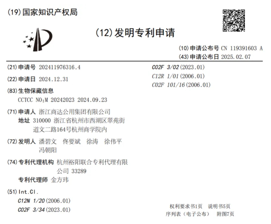 近日,浙江商達公用集團有限公司在微生物EEM菌種資源研發(fā)與應用方面取得重要突破,其自主研發(fā)的不動桿菌CN-D1分離菌株及其菌體制劑,為循環(huán)水養(yǎng)殖和養(yǎng)殖尾水凈化提供了高效、環(huán)保的生物脫氮解決方案。相關成果成果《不動桿菌CN-D1分離菌株及其應用》已通過國家知識產權局發(fā)明專利申請(申請?zhí)枺?02411976316.4),并于2025年4月28日授權(發(fā)文序號2025042800420800)。