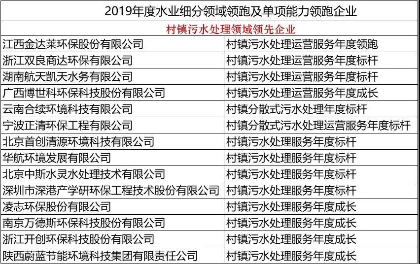 本次評選綜合E20評審團、專家評審團、行研評審團、媒體評審團、網(wǎng)絡(luò)評審團五大評審團的意見,從市場業(yè)績、財務(wù)狀況、創(chuàng)新能力、新聞關(guān)注度、品牌能力、企業(yè)家榮譽六大維度進行綜合評定,最終甄選出“2019年度水業(yè)細(xì)分領(lǐng)域領(lǐng)跑及單項能力領(lǐng)跑企業(yè)”。