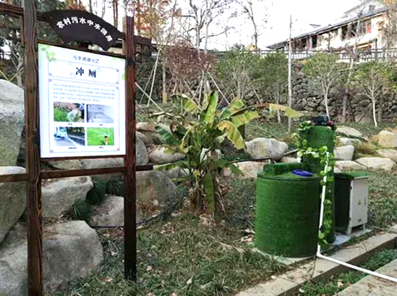 針對村內(nèi)農(nóng)家樂眾多的特點(diǎn),項(xiàng)目引入了現(xiàn)代發(fā)酵技術(shù)強(qiáng)化脫氮除磷效率,采用雙良商達(dá)標(biāo)準(zhǔn)化FBR發(fā)酵槽,并用物聯(lián)網(wǎng)技術(shù)實(shí)現(xiàn)了模式化智慧運(yùn)行,出水穩(wěn)定達(dá)到《城鎮(zhèn)污水處理廠污染物排放標(biāo)準(zhǔn)》(GB 18918-2002)一級(jí)A標(biāo)準(zhǔn),深度處理后雜用水用于沖廁和綠化等資源化利用。站點(diǎn)景觀設(shè)計(jì),充分融合了山地的特征,草木沙石就地取材,采用“微園林”造景手法,探索建設(shè)村落景區(qū)污水處理4.0示范點(diǎn)。
