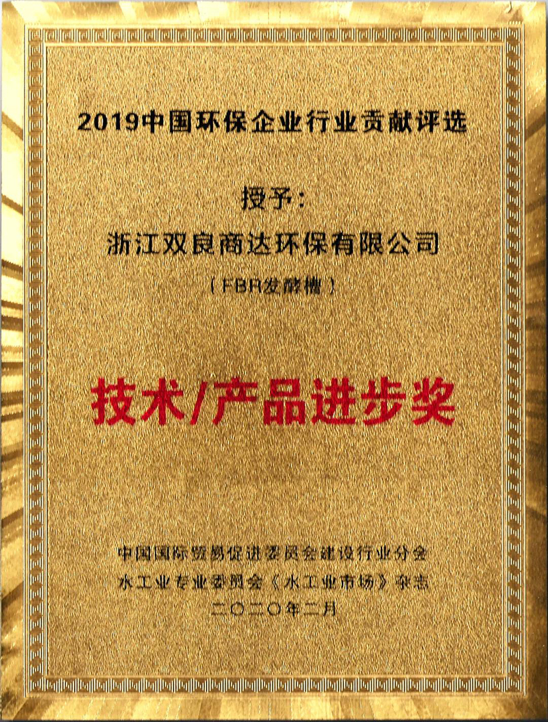 2020年1月,由《水工業(yè)市場(chǎng)》雜志發(fā)起的“2019中國(guó)環(huán)保企業(yè)行業(yè)貢獻(xiàn)評(píng)選”活動(dòng)落下帷幕。雙良商達(dá)FBR發(fā)酵槽產(chǎn)品榮獲“2019中國(guó)環(huán)保企業(yè)行業(yè)貢獻(xiàn)評(píng)選——技術(shù)/產(chǎn)品進(jìn)步獎(jiǎng)”,這是FBR發(fā)酵槽技術(shù)產(chǎn)品連續(xù)5年獲得行業(yè)認(rèn)可。