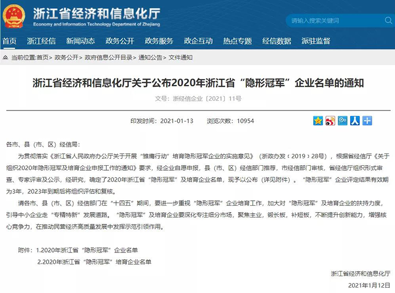 浙江省“隱形冠軍”企業(yè)是由浙江省人民政府辦公廳組織開(kāi)展的一項(xiàng)評(píng)選活動(dòng),從產(chǎn)品市場(chǎng)占有率、產(chǎn)品創(chuàng)新性、生產(chǎn)技術(shù)水平、企業(yè)持續(xù)創(chuàng)新能力等方面打分,對(duì)企業(yè)有著嚴(yán)格要求。主要產(chǎn)品在行業(yè)內(nèi)具有優(yōu)良信譽(yù),且市場(chǎng)占有率位于全國(guó)前5位或全省前3位;企業(yè)研發(fā)經(jīng)費(fèi)支出占營(yíng)業(yè)收入的比重不低于3%;相關(guān)關(guān)鍵性能指標(biāo)處于國(guó)際同類(lèi)產(chǎn)品的領(lǐng)先水平。