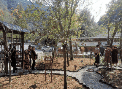 在指南村的入口處的百草園中藥種植示范基地,占地1500平方,園內種植150多種中草藥。百草園主要以示范和科普為主,并指南村的鄉(xiāng)村旅游增加了一道獨有的風景。此外,指南村與浙江農林大學開展合作,依托浙江農林大學林業(yè)碳匯專家團隊的學科優(yōu)勢。將村內1000多畝竹林建設成為碳匯林,全面發(fā)展碳匯經濟,增加村民收入。