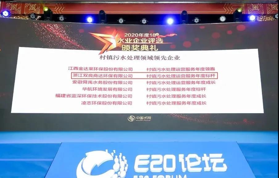 雙良商達榮獲“2020年度水業(yè)細分領(lǐng)域領(lǐng)跑及單項能力領(lǐng)跑企業(yè)——村鎮(zhèn)污水處理運營服務(wù)年度標桿”獎。