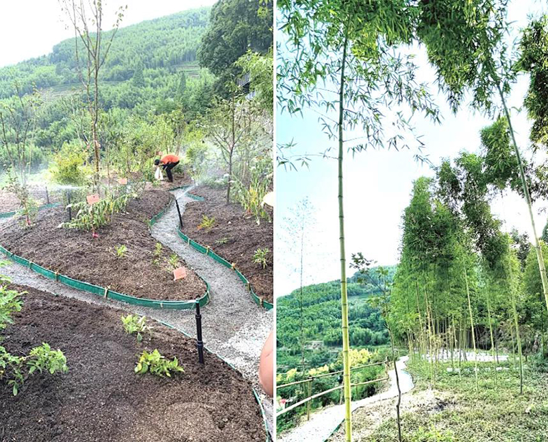 百草園中藥種植科研基地在指南村的入口處,有一個(gè)占地1500平方的中藥種植示范基地百草園,里面有150多種中草藥,主要以科研示范為主。一方面起到了固碳的作用,另外一方面,為指南村的鄉(xiāng)村旅游增加了一道獨(dú)有的風(fēng)景。