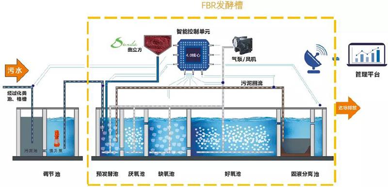 商達(dá)第四代FBR發(fā)酵槽就是在闡明環(huán)境功能微生物代謝特征基礎(chǔ)上,重新認(rèn)識(shí)微生物發(fā)酵工程過程,精細(xì)調(diào)控功能微生物代謝活性,提高出水達(dá)標(biāo)率95%以上,滿足政府以及PPP項(xiàng)目的需求。
