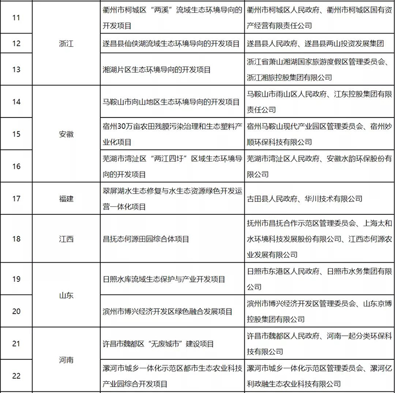 附:2021年生態(tài)環(huán)境導(dǎo)向的開發(fā)(EOD)模式試點(diǎn)項(xiàng)目名單