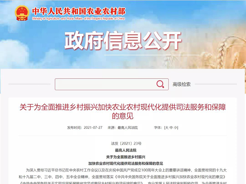 關于為全面推進鄉(xiāng)村振興加快農(nóng)業(yè)農(nóng)村現(xiàn)代化提供司法服務和保障的意見