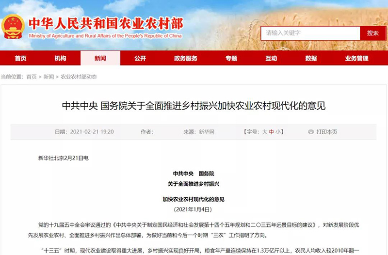 2021年中央一號文件提出全面推進鄉(xiāng)村振興