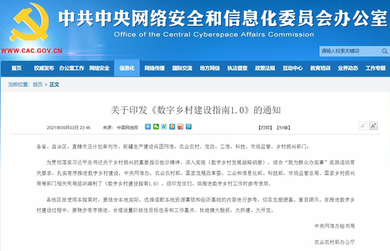 關于印發(fā)《數(shù)字鄉(xiāng)村建設指南1.0》的通知