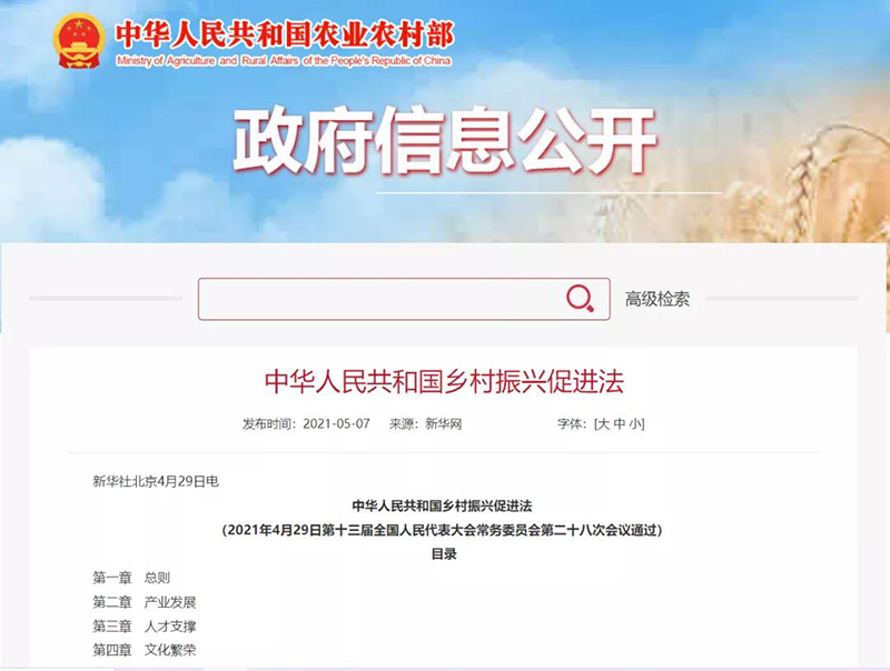 2021年中華人民共和國鄉(xiāng)村振興促進法