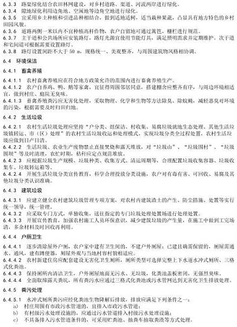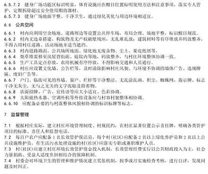 明確建設(shè)要求。《農(nóng)村人居環(huán)境建設(shè)規(guī)范》提出,推進農(nóng)村人居環(huán)境建設(shè),要堅持四項基本要求。一要加強規(guī)劃引導。根據(jù)地理、民俗、經(jīng)濟水平和農(nóng)民期盼,合理安排建設(shè)任務(wù)和建設(shè)時序。二要注重鄉(xiāng)土味道。統(tǒng)籌兼顧農(nóng)村田園風貌保護和環(huán)境整治,強化地域文化元素,綜合提升田水路林村風貌,促進人與自然和諧共生、村莊形態(tài)與自然環(huán)境相得益彰。三要尊重村民意愿。根據(jù)村民需求合理確定人居環(huán)境建設(shè)優(yōu)先順序和標準,發(fā)揮村規(guī)民約作用,提升村民參與人居環(huán)境建設(shè)的自覺性、積極性、主動性。四是堅持建管并重。先建機制、后建工程,合理確定投融資模式和運行管護方式,推進投融資體制機制和建設(shè)管護機制創(chuàng)新,保各類設(shè)施建成并長期穩(wěn)定運行。