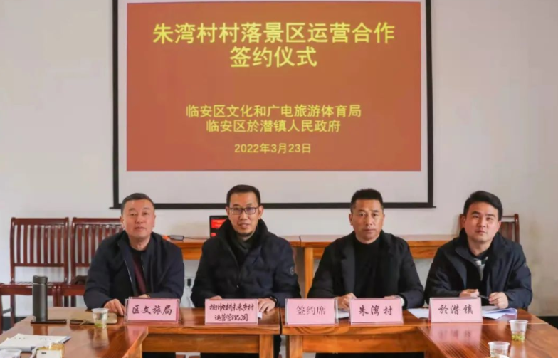 隨后,杭州九耕未來鄉(xiāng)村運(yùn)營管理有限公司和朱灣村經(jīng)濟(jì)合作社現(xiàn)場舉行了簽約,文旅局和鎮(zhèn)政府見證簽約。