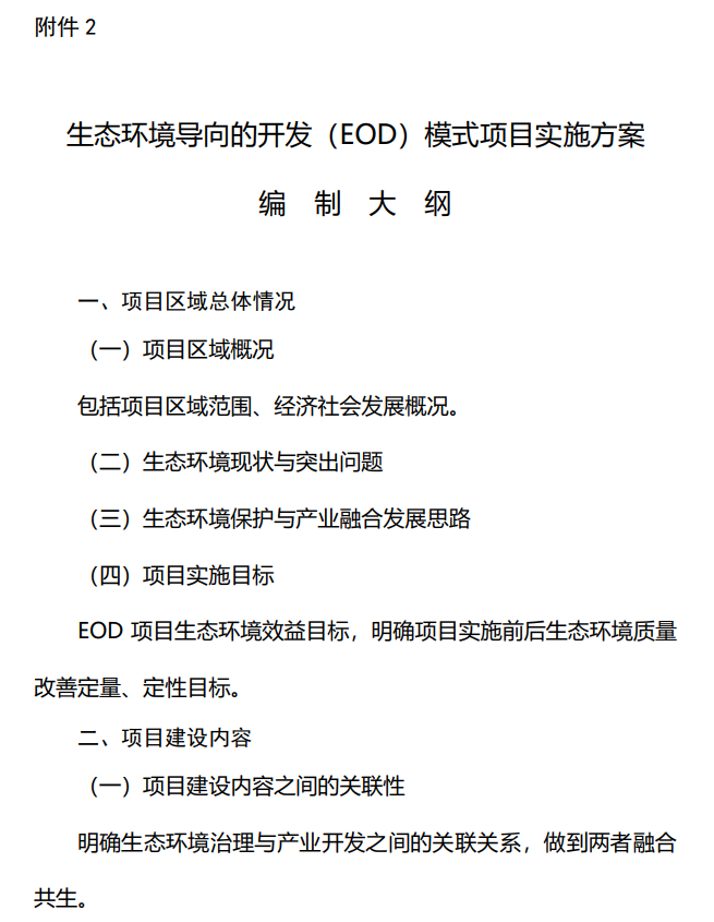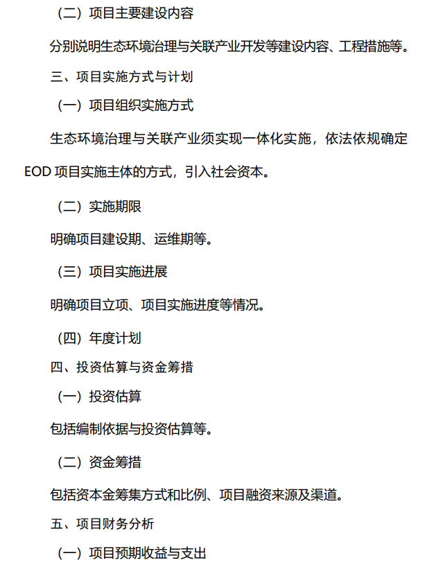 2.生態(tài)環(huán)境導(dǎo)向的開(kāi)發(fā)(EOD)模式項(xiàng)目實(shí)施方案編制大綱