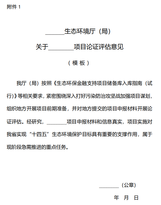 (三)省級(jí)生態(tài)環(huán)境部門(mén)項(xiàng)目論證評(píng)估意見(jiàn)(模板見(jiàn)附件1)。