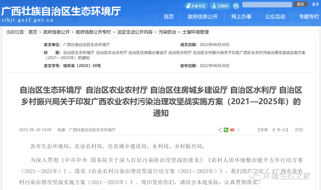 治理農(nóng)業(yè)農(nóng)村污染是深入打好污染防治攻堅(jiān)戰(zhàn)的重要任務(wù),是實(shí)施鄉(xiāng)村振興戰(zhàn)略的重要舉措,對(duì)推動(dòng)農(nóng)業(yè)農(nóng)村綠色低碳發(fā)展、履行生物多樣性公約、加強(qiáng)農(nóng)村生態(tài)文明建設(shè)具有重要意義。為貫徹落實(shí)《中共中央 國務(wù)院關(guān)于深入打好污染防治攻堅(jiān)戰(zhàn)的意見》《農(nóng)村人居環(huán)境整治提升五年行動(dòng)方案(2021—2025年)》,加快解決農(nóng)業(yè)農(nóng)村突出環(huán)境問題,制定本行動(dòng)方案。