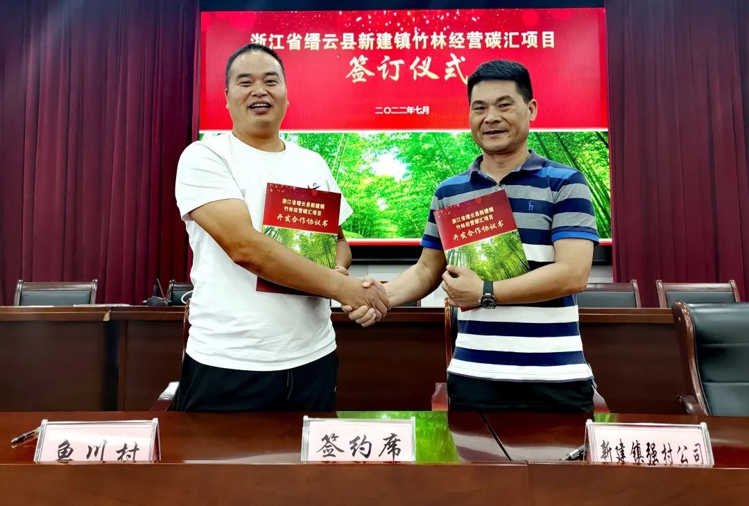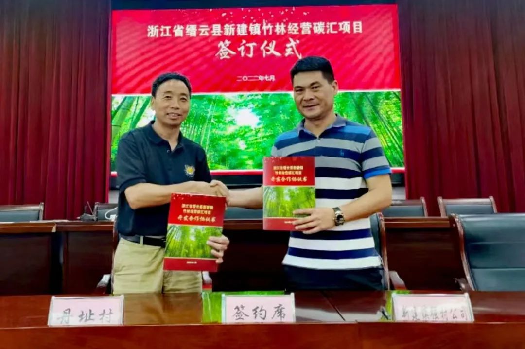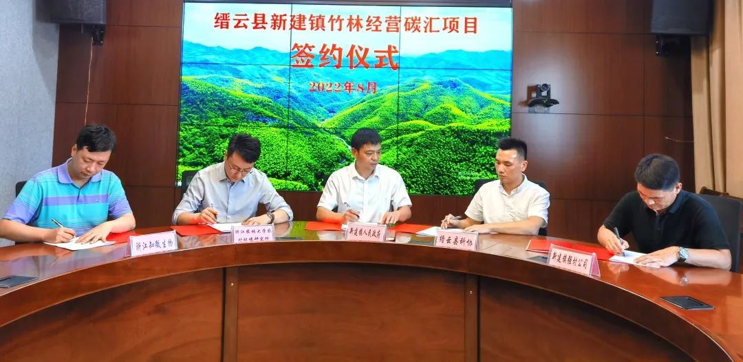 8月5日,縉云縣新建鎮(zhèn)首期4萬(wàn)畝竹林經(jīng)營(yíng)碳匯項(xiàng)目開(kāi)發(fā)合作協(xié)議成功簽署??N云縣科學(xué)技術(shù)協(xié)會(huì)、新建鎮(zhèn)人民政府,新建鎮(zhèn)強(qiáng)村公司、浙江農(nóng)林大學(xué)農(nóng)村環(huán)境研究所、浙江知溦生物科技有限公司單位參加簽約儀式,協(xié)議的簽署標(biāo)志著縉云縣首個(gè)竹林碳匯項(xiàng)目成功落地新建。