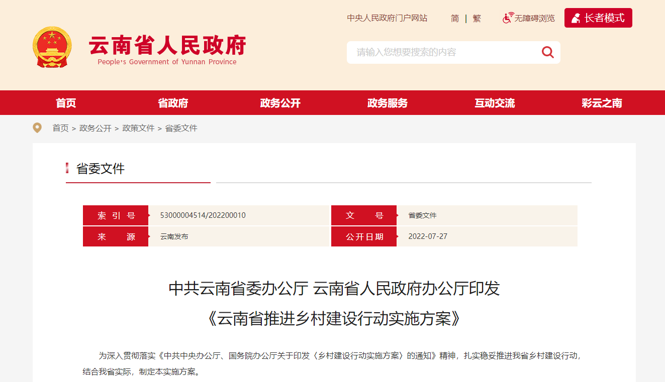 云南省委辦公廳、省政府辦公廳近日印發(fā)的《云南省推進(jìn)鄉(xiāng)村建設(shè)行動實施方案》(以下簡稱《方案》),緊密結(jié)合云南省實際,明確了推進(jìn)鄉(xiāng)村建設(shè)行動的12項重點任務(wù)。其中,通過實施鄉(xiāng)村清潔能源建設(shè)工程、農(nóng)村人居環(huán)境整治提升五年行動等八大工程和行動,加強(qiáng)農(nóng)村重點領(lǐng)域基礎(chǔ)設(shè)施建設(shè),加快補齊農(nóng)村能源、人居環(huán)境等重點領(lǐng)域基礎(chǔ)設(shè)施短板。