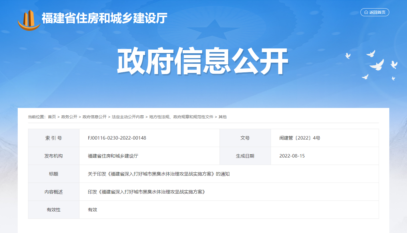 8月23日,福建省住建廳發(fā)布關(guān)于印發(fā)《福建省深入打好城市黑臭水體治理攻堅(jiān)戰(zhàn)實(shí)施方案》的通知,根據(jù)方案,已開展建成區(qū)黑臭水體治理的設(shè)區(qū)市,要鞏固治理成效,建立防止返黑返臭的長效機(jī)制,新增黑臭水體及返黑返臭的應(yīng)限期完成治理。平潭綜合實(shí)驗(yàn)區(qū)和縣級城市(含長樂、龍海、長泰、建陽、沙縣、永定等新設(shè)區(qū))建成區(qū)排查出的黑臭水體,2022年、2023年、2024年、2025年的消除比例分別達(dá)到40%、60%、80%、90%。三明、南平、龍巖等地區(qū)的縣級城市力爭提前完成。