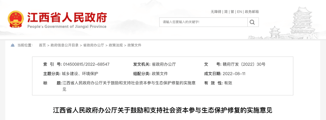 為貫徹落實《國務(wù)院辦公廳關(guān)于鼓勵和支持社會資本參與生態(tài)保護(hù)修復(fù)的意見》(國辦發(fā)〔2021〕40號)精神,促進(jìn)社會資本參與全省生態(tài)保護(hù)修復(fù)工作,全面服務(wù)美麗中國“江西樣板”建設(shè),經(jīng)省政府同意,結(jié)合我省實際,現(xiàn)提出以下實施意見。以習(xí)近平生態(tài)文明思想為指導(dǎo),全面貫徹黨的十九大和十九屆歷次全會以及省第十五次黨代會精神,踐行“綠水青山就是金山銀山”理念,堅持“生態(tài)優(yōu)先、綠色發(fā)展”戰(zhàn)略定位,重點圍繞全省國土空間生態(tài)保護(hù)修復(fù)總體布局,以解決生態(tài)系統(tǒng)問題為導(dǎo)向,以市場化、多元化投融資為支撐,增強(qiáng)生態(tài)產(chǎn)品供給能力,激活釋放政策紅利,健全完善生態(tài)保護(hù)修復(fù)投入機(jī)制,實現(xiàn)生態(tài)效益、社會效益和經(jīng)濟(jì)效益相統(tǒng)一,為推動全省高質(zhì)量發(fā)展、加快建設(shè)美麗中國“江西樣板”奠定堅實的生態(tài)基礎(chǔ)。(一)自然生態(tài)系統(tǒng)保護(hù)修復(fù)。針對受損、退化、功能下降的森林、草地、濕地、河流、湖泊等自然生態(tài)系統(tǒng),開展水土流失防治、崩崗綜合治理、石漠化防治、河道保護(hù)治理、水生態(tài)保護(hù)修復(fù)、濕地生態(tài)保護(hù)修復(fù)、野生動植物種群保護(hù)恢復(fù)、生物多樣性保護(hù)、水源涵養(yǎng)、森林質(zhì)量提升、中幼林撫育、退化林(草)地修復(fù)、人工商品林建設(shè)等。全面提升生態(tài)系統(tǒng)碳匯能力,增加碳匯增量,鼓勵開發(fā)碳匯項目??茖W(xué)評估界定自然保護(hù)地保護(hù)和建設(shè)范圍,引導(dǎo)當(dāng)?shù)鼐用窈凸娼M織等參與科普宣教、自然體驗、紅色教育、科學(xué)實驗等活動和特許經(jīng)營項目。(二)農(nóng)田生態(tài)系統(tǒng)保護(hù)修復(fù)。針對生態(tài)功能減弱、空間布局破碎、生物多樣性減少、開發(fā)利用與生態(tài)保護(hù)矛盾突出的農(nóng)田生態(tài)系統(tǒng),開展全域土地綜合整治,實施農(nóng)用地整理、建設(shè)用地整理、鄉(xiāng)村生態(tài)保護(hù)修復(fù)、土地復(fù)墾、生物多樣性保護(hù)等,改善農(nóng)田生境和條件。(三)城鎮(zhèn)生態(tài)系統(tǒng)保護(hù)修復(fù)。針對城鎮(zhèn)生態(tài)系統(tǒng)連通不暢、空間結(jié)構(gòu)不合理、生態(tài)空間不足等問題,實施生態(tài)廊道、生態(tài)清潔小流域、水系連通工程、生態(tài)基礎(chǔ)設(shè)施和生態(tài)網(wǎng)絡(luò)建設(shè),提升城鎮(zhèn)生態(tài)系統(tǒng)質(zhì)量和穩(wěn)定性。