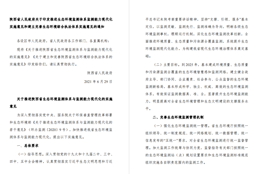 10、《陜西省人民政府關(guān)于印發(fā)推進(jìn)生態(tài)環(huán)境監(jiān)測體系監(jiān)測能力現(xiàn)代化實(shí)施意見和建立完善生態(tài)環(huán)境綜合執(zhí)法體系實(shí)施意見的通知》