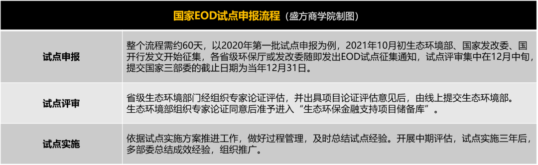 2018年8月,生態(tài)環(huán)境部發(fā)布《關(guān)于生態(tài)環(huán)境領(lǐng)域進(jìn)一步深化“放管服”改革,推動(dòng)經(jīng)濟(jì)高質(zhì)量發(fā)展的指導(dǎo)意見》(環(huán)規(guī)財(cái)〔2018〕86號(hào))首次提出EOD模式以后,生態(tài)環(huán)境部、國(guó)家發(fā)改委、國(guó)家開發(fā)銀行分別在2020年9月、2021年10月開展兩次EOD試點(diǎn)征集工作。從2022年開始,從之前的試點(diǎn)申報(bào)制轉(zhuǎn)為常態(tài)入庫(kù)制。