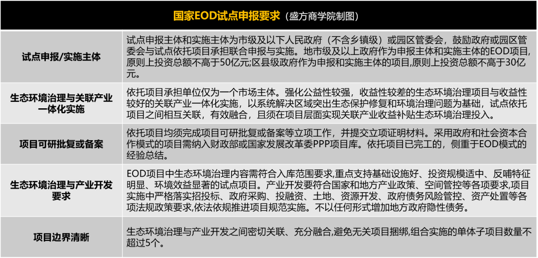 總結(jié):生態(tài)環(huán)境導(dǎo)向的開發(fā)(EOD)模式是實(shí)現(xiàn)地區(qū)經(jīng)濟(jì)社會(huì)發(fā)展和生態(tài)環(huán)境保護(hù)融合共生的重要方式,是生態(tài)產(chǎn)品價(jià)值實(shí)現(xiàn)機(jī)制的重要組成,是加強(qiáng)生態(tài)環(huán)保投融資的重要渠道。開展EOD模式試點(diǎn)工作對(duì)于“十四五”期間深入打好污染防治攻堅(jiān)戰(zhàn)、提高各級(jí)政府環(huán)境治理能力、踐行“兩山”理念具有重要而長(zhǎng)遠(yuǎn)意義。文章來(lái)源:盛方商學(xué),轉(zhuǎn)自:北極星環(huán)境修復(fù)網(wǎng)