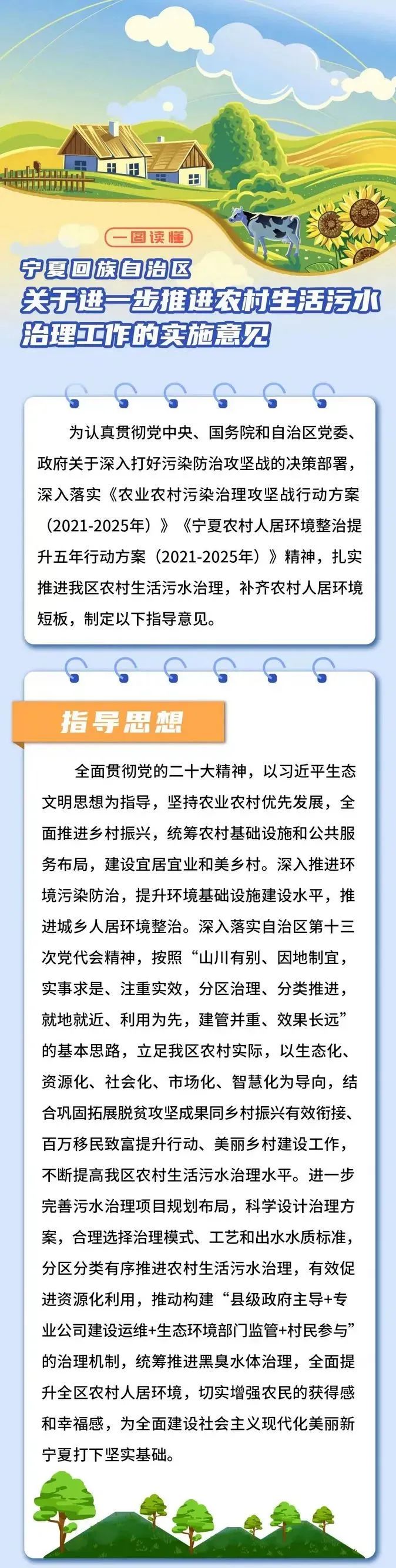 寧夏近日出臺《關(guān)于進(jìn)一步推進(jìn)農(nóng)村生活污水治理工作的實(shí)施意見》?!兑庖姟诽岢觯?022年,實(shí)現(xiàn)全區(qū)農(nóng)村生活污水治理率達(dá)到30%。到2025年,全區(qū)農(nóng)村生活污水治理率達(dá)到40%。圖解如下:
