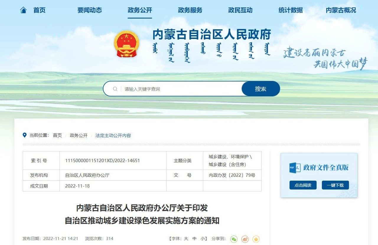 近日,內(nèi)蒙古自治區(qū)人民政府辦公廳印發(fā)了《內(nèi)蒙古自治區(qū)推動城鄉(xiāng)建設(shè)綠色發(fā)展實(shí)施方案》(以下簡稱《方案》),提出到2025年,自治區(qū)城鄉(xiāng)建設(shè)綠色發(fā)展取得重大進(jìn)展,城市整體性、系統(tǒng)性、生長性增強(qiáng),城鄉(xiāng)生態(tài)環(huán)境質(zhì)量整體改善,建設(shè)方式不斷優(yōu)化,基礎(chǔ)設(shè)施和建筑綠色品質(zhì)穩(wěn)步提升,綜合治理能力顯著提高,綠色生活方式普遍推廣。