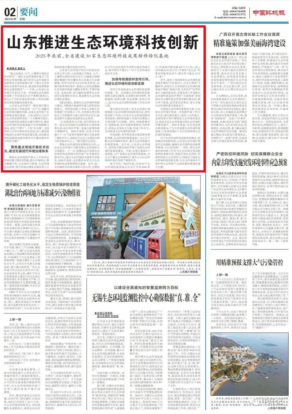 山東省生態(tài)環(huán)境廳一級(jí)巡視員葛為硯對(duì)記者說:“科技是第一生產(chǎn)力,是解決生態(tài)環(huán)境問題的利器,也是生態(tài)環(huán)保產(chǎn)業(yè)高質(zhì)量發(fā)展的基礎(chǔ)。山東省將以習(xí)近平生態(tài)文明思想和黨的二十大精神為指引,充分發(fā)揮科技創(chuàng)新的支撐引領(lǐng)作用,強(qiáng)化生態(tài)環(huán)境科技創(chuàng)新基礎(chǔ)平臺(tái)和保障能力建設(shè),牽住‘牛鼻子’,下好‘先手棋’,為持續(xù)深入打好污染防治攻堅(jiān)戰(zhàn),深入推進(jìn)黃河流域生態(tài)保護(hù)和高質(zhì)量發(fā)展,加快推動(dòng)綠色低碳高質(zhì)量發(fā)展先行區(qū)建設(shè)提供有力科技支撐。”