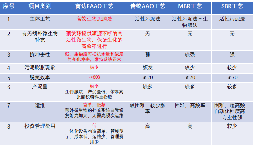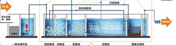 1.0—工程化:工程思維。第一代主要是實現(xiàn)污水治理功能。工藝 集成度高,但施工周期長,隱蔽工程多, 現(xiàn)場質(zhì)量難以保障,內(nèi)部填料需要定期 更換,加大了運維難工作量。 2.0—產(chǎn)品化:產(chǎn)品思維。商達開展農(nóng)村污水處置終端的產(chǎn)品化在 業(yè)界是比較早的。在2008年開始針對 土建施工復雜等問題進行了成套化、設(shè) 備化改造。產(chǎn)品多以玻璃鋼為材料,采 用半手工纏繞。 3.0—工業(yè)化:工業(yè)思維。這一代產(chǎn)品進行工業(yè)化改造。包括標 準化、規(guī)?;⒌统杀镜?。因此,第 三代產(chǎn)品生產(chǎn)方式由手工改為模壓工 廠標準化生產(chǎn),質(zhì)量更可靠。 4.0—發(fā)酵強化:效果思維。商達第四代設(shè)備就是在闡明環(huán)境功能微生物代謝特征基礎(chǔ)上,重新認識微生物發(fā)酵過程,通過精細調(diào)控,強化微生物在農(nóng)村污水處 理工藝中的效率。 5.0—生態(tài)化:低碳思維。這一代設(shè)備目前還處于研發(fā)示范階段,我們已經(jīng)在浙江臨安指南村等項目上進行示范展示。其特點是,站在碳中和與鄉(xiāng)村振興的維 度來考慮農(nóng)村污水治理,而不單以治污水一個角度,治理過程中和農(nóng)村生態(tài)、生產(chǎn)、生活相融合,具備資源化利用的功能。 6.0—智慧化 (構(gòu)想):“元宇宙” 思維。這一代設(shè)備擬倚仗強大的終端和后臺支持,解決的不僅僅只是污水智能控制,還包括農(nóng)村環(huán)境監(jiān)測、智慧農(nóng)業(yè)、閉環(huán)循環(huán)利用等多個方面,將技術(shù)體系、運營體系和產(chǎn)業(yè)系統(tǒng)有機融合,更好地服務未來的美麗鄉(xiāng)村建設(shè)。FBR發(fā)酵槽有兩個顯著的特征,首先在上一代的基礎(chǔ)上進行發(fā)酵強化改進,第二就是產(chǎn)品標準多樣性,可以根據(jù)客戶的要求,進行有針 對性地設(shè)計,以滿足不同省份出水標準的要求。其中,強化型FRB發(fā)酵槽的出水水質(zhì)可達到地表準Ⅳ類水標準。FBR發(fā)酵槽采用FAAO發(fā)酵強化工藝,在提高建設(shè)速度的同時可以保證出水穩(wěn)定達標。其中F表示:發(fā) 酵 Fermentation;B表示:生物膜 Biofilm R表示:反應器 Reactor,F(xiàn)AAO發(fā)酵強化工藝是一種基于厭氧/ 缺氧/好氧(AAO)生化組合,利用發(fā)酵技術(shù),強化脫氮除磷功能的移動床生物膜工藝。