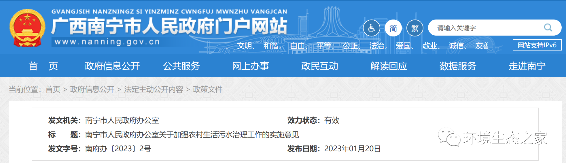 南寧市人民政府辦公室關(guān)于加強(qiáng)農(nóng)村生活污水治理工作的實(shí)施意見