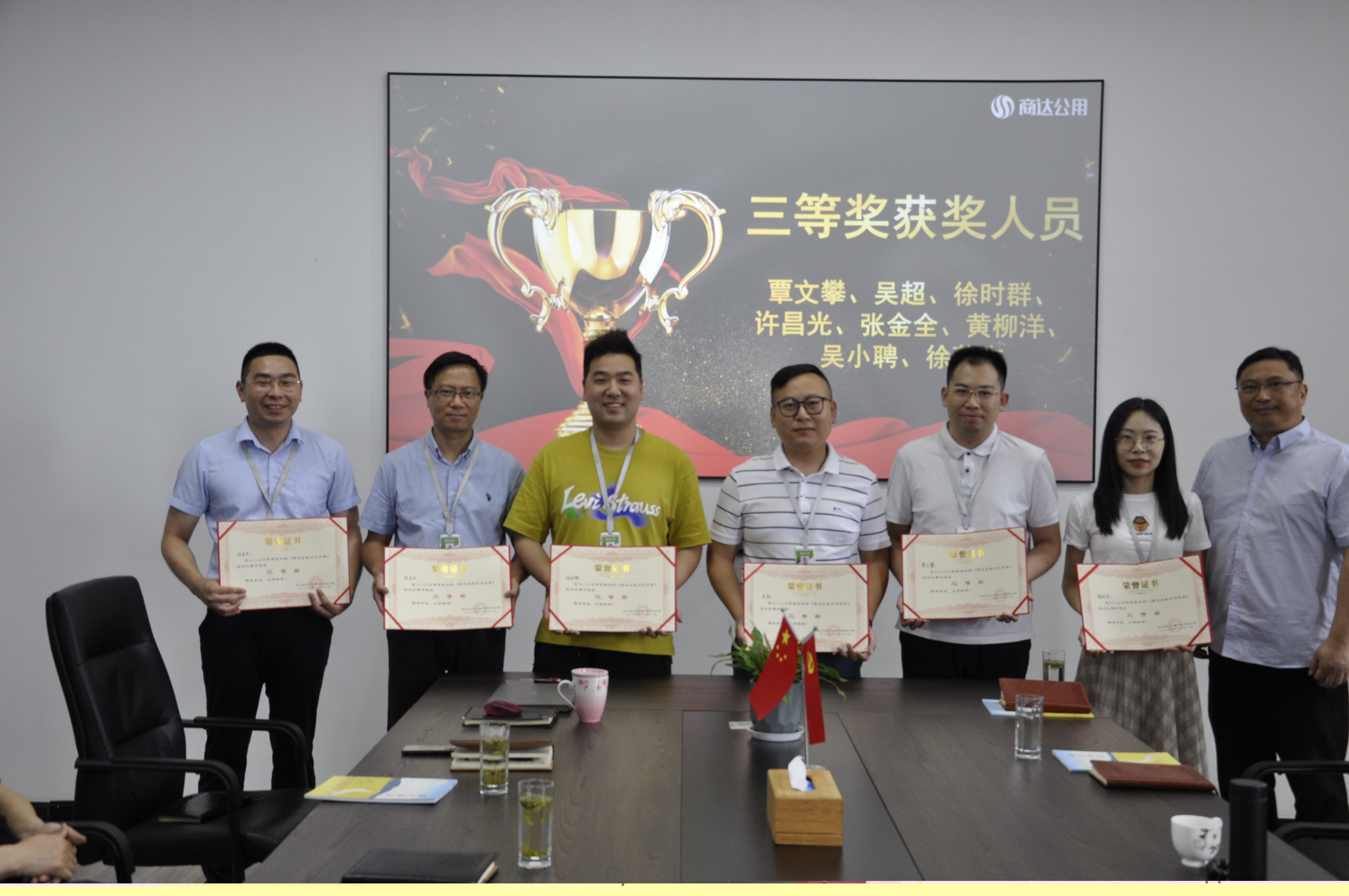 三等獎(jiǎng)獲獎(jiǎng)人員為覃文攀、吳超、徐時(shí)群、許昌光、張金全、黃柳洋、吳小聘、徐蔚杰,商達(dá)公用總工吳勝春為其頒獎(jiǎng)。