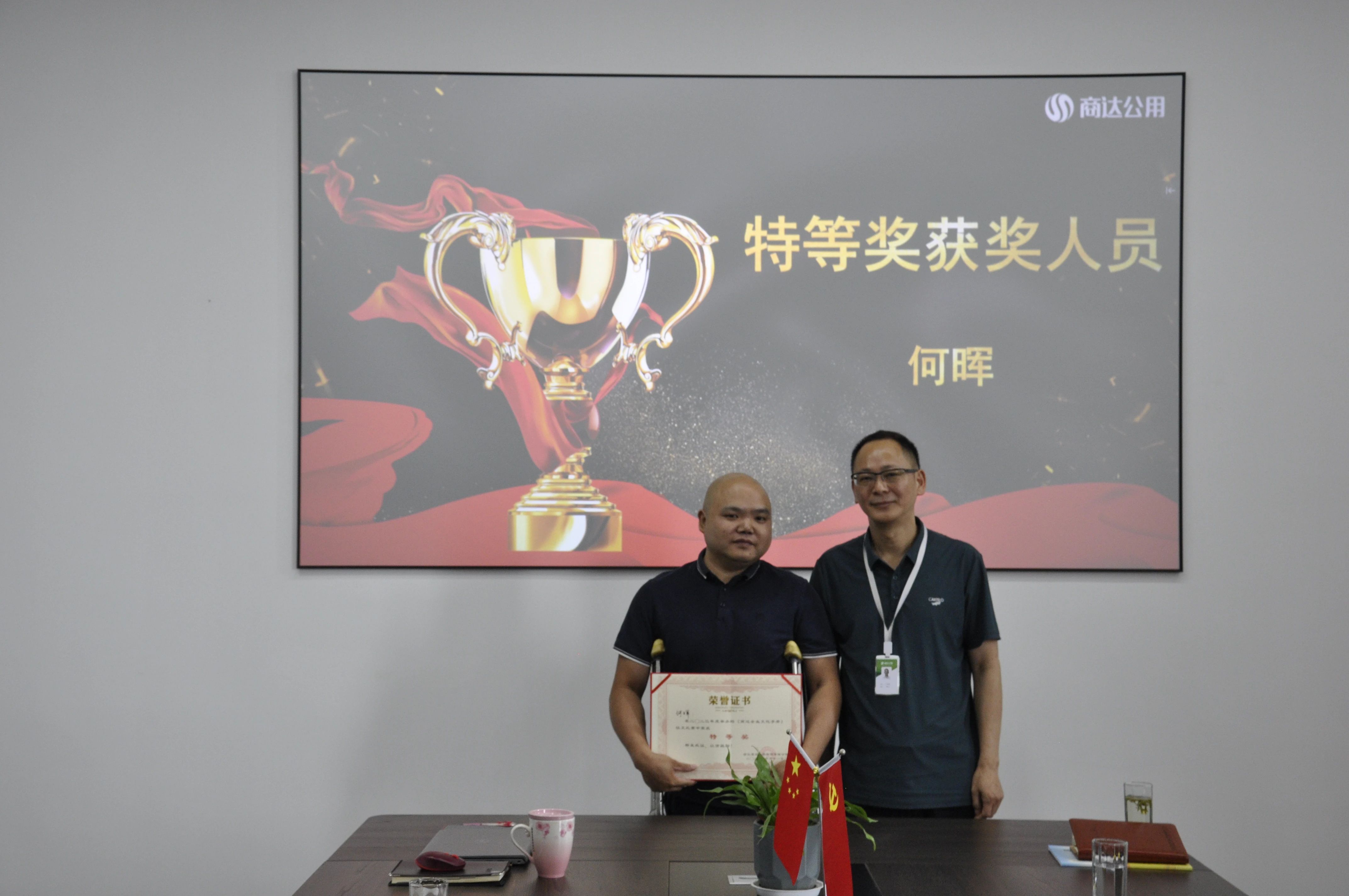 戰(zhàn)略發(fā)展中心何暉以品牌的角度講訴了商達(dá)的企業(yè)文化,憑借《講好商達(dá)故事 傳承價(jià)值文化》獲得此次征文活動(dòng)的特等獎(jiǎng),商達(dá)公用執(zhí)行董事鄭展望為其頒獎(jiǎng)。