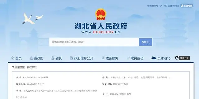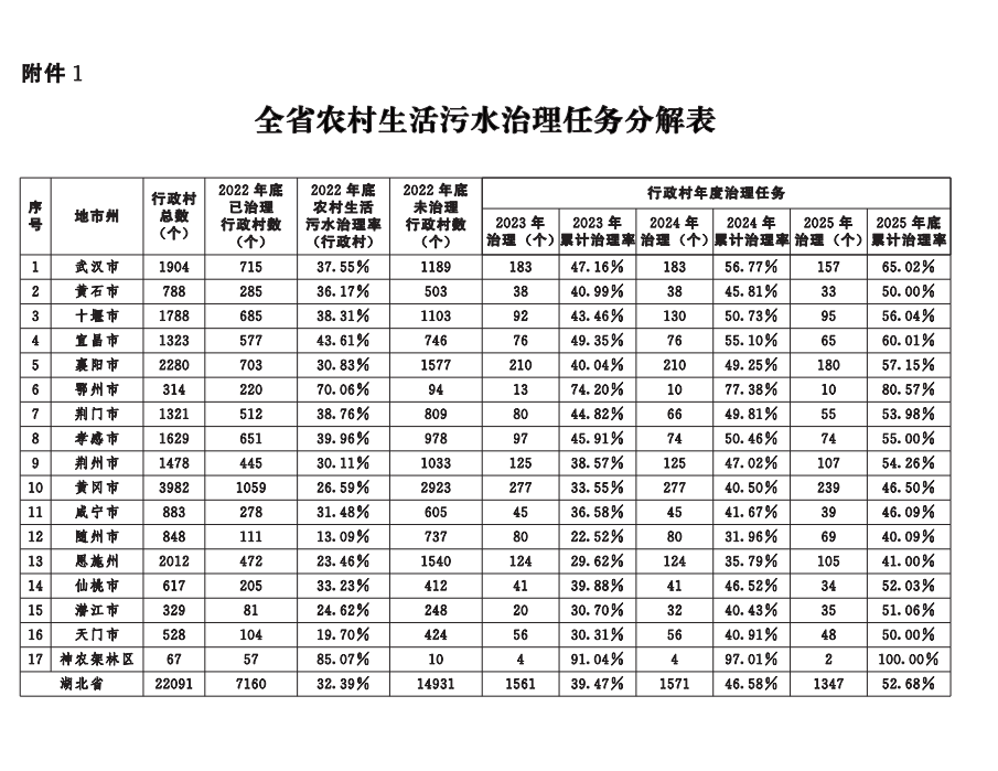 湖北省人民政府辦公廳關(guān)于印發(fā)湖北省農(nóng)村生活污水治理三年行動(dòng)方案(2023-2025年)的通知