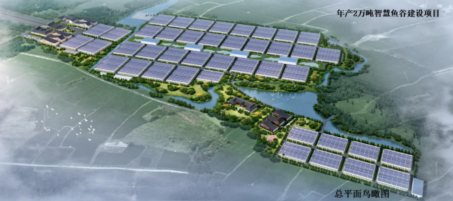 長興年產(chǎn)2萬噸智慧漁谷子項(xiàng)目鳥瞰圖