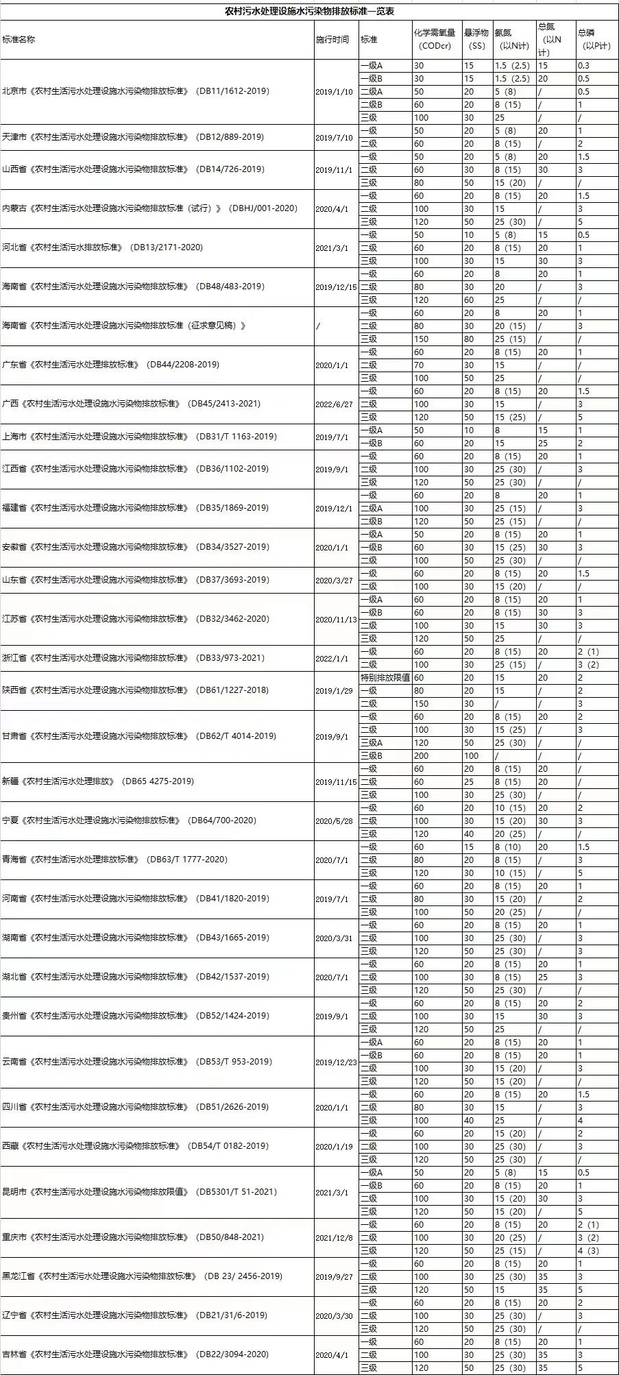 一、全國(guó)31省農(nóng)村污水排放標(biāo)準(zhǔn)