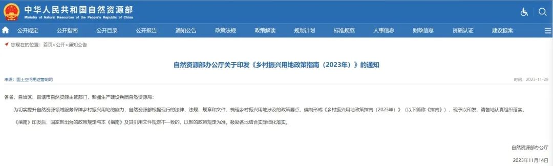 自然資源部辦公廳關(guān)于印發(fā)《鄉(xiāng)村振興用地政策指南(2023年)》的通知