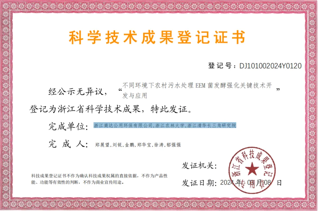 該成果經(jīng)多位中國工程院院士牽頭組成的專家鑒定委員會鑒定結(jié)論:“該項目成果創(chuàng)新突出,整體技術(shù)達到國際先進水平,在針對不同環(huán)境下農(nóng)村污水處理專用菌種的研發(fā)和篩選技術(shù)處于國際領(lǐng)先水平?!?/strong>