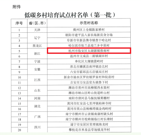 近日,農(nóng)業(yè)農(nóng)村部農(nóng)業(yè)生態(tài)與資源保護總站公布了第一批低碳鄉(xiāng)培育試點村名單,臨安區(qū)太湖源鎮(zhèn)指南村成功入選。