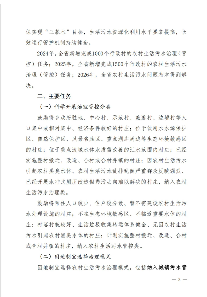《吉林省農(nóng)村生活污水治理(管控)三年行動(dòng)方案(2024-2026年)(征求意見(jiàn)稿)》
